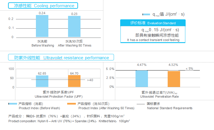 - Improved UV protection performance of fabrics under the condition of low thickness and low weight.