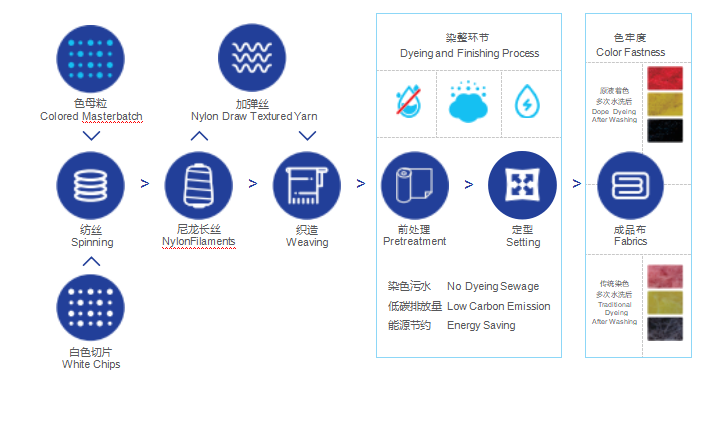 Comparison between dope dyeing and traditional dyeing